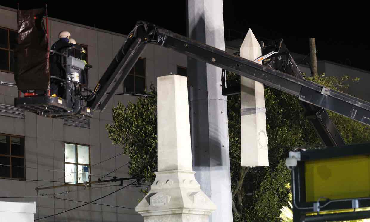 New Orleans takes down Confederate monuments under cover of darkness