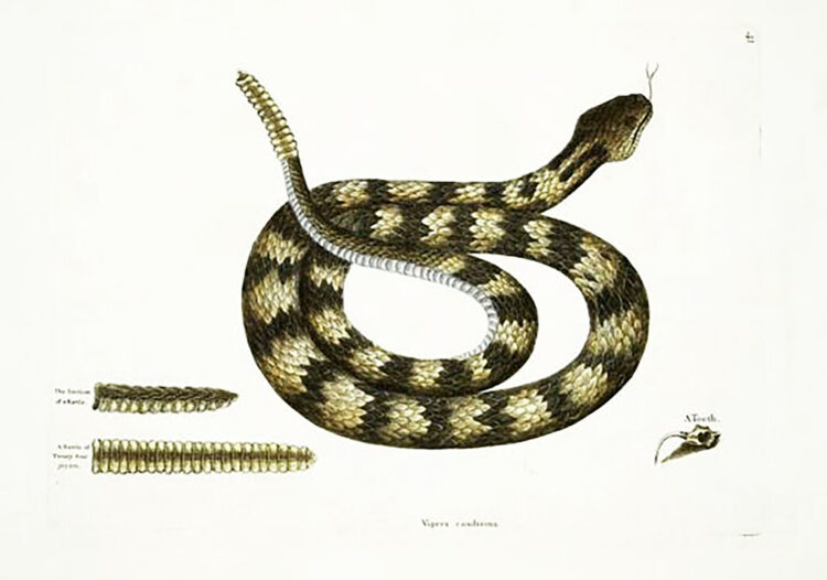 Rare Book Division, The New York Public Library. "Vipera caudisona, The Rattle-Snake; The Section of a Rattle; A Rattle of Twenty-four joynts; A Tooth." New York Public Library Digital Collections. Accessed [June 6, 2024]. URL: https://digitalcollections.nypl.org/items/510d47da-66e7-a3d9-e040-e00a18064a99